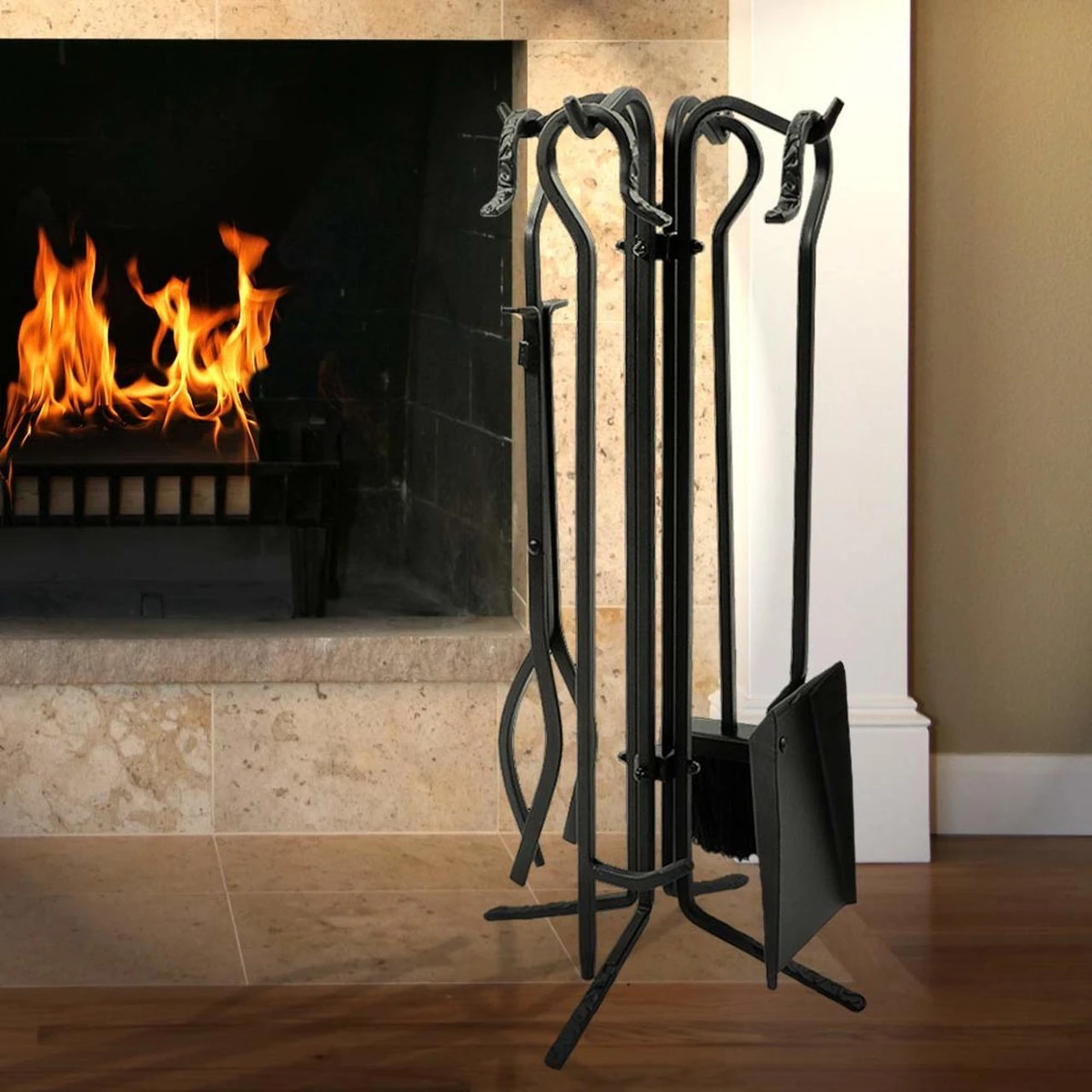 This handy Mini Fireplace Tool Set is the perfect item to aid in keeping your hearth area as clean as a whistle. It’s made of heavy-duty wrought iron for strength and durability and has a powder-coat finish for lasting great looks. It’s a perfect set to add to any hearth setting. Set includes a brush, poker, tongs, shovel and tool stand. Measures 22″ High.