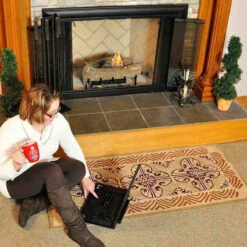 Create an inviting sanctuary in front of your fireplace with an attractive Rectangular Hearth Rug. This rug is made of 100% Wool with a decorative art deco-cocoa design to add beauty to your hearth. It meets federal requirements of part 1631 (FF2-70) for surface flammability of small carpets, to provide superior protection for your hearth area against the damage of rolling logs and stray embers. The Art Deco-Cocoa Hearth Rug Measures 56″ Long x 26″ Wide.