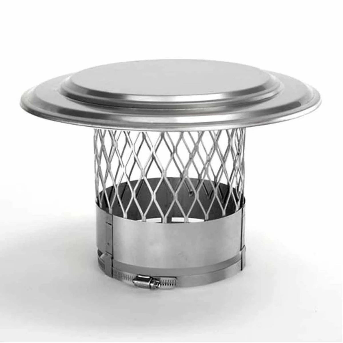 The HomeSaver UltraPro Rain Cap is for use with the 8″ HomeSaver collarplate. The Rain Cap connects to the collarplate with a band connection for quick and easy installation. The HomeSaver UltraPro Rain Cap is constructed of 316-alloywith 3/4″ mesh that allows smoke to easily escape but keeps rain from pouring into the chimney.Specifications:
