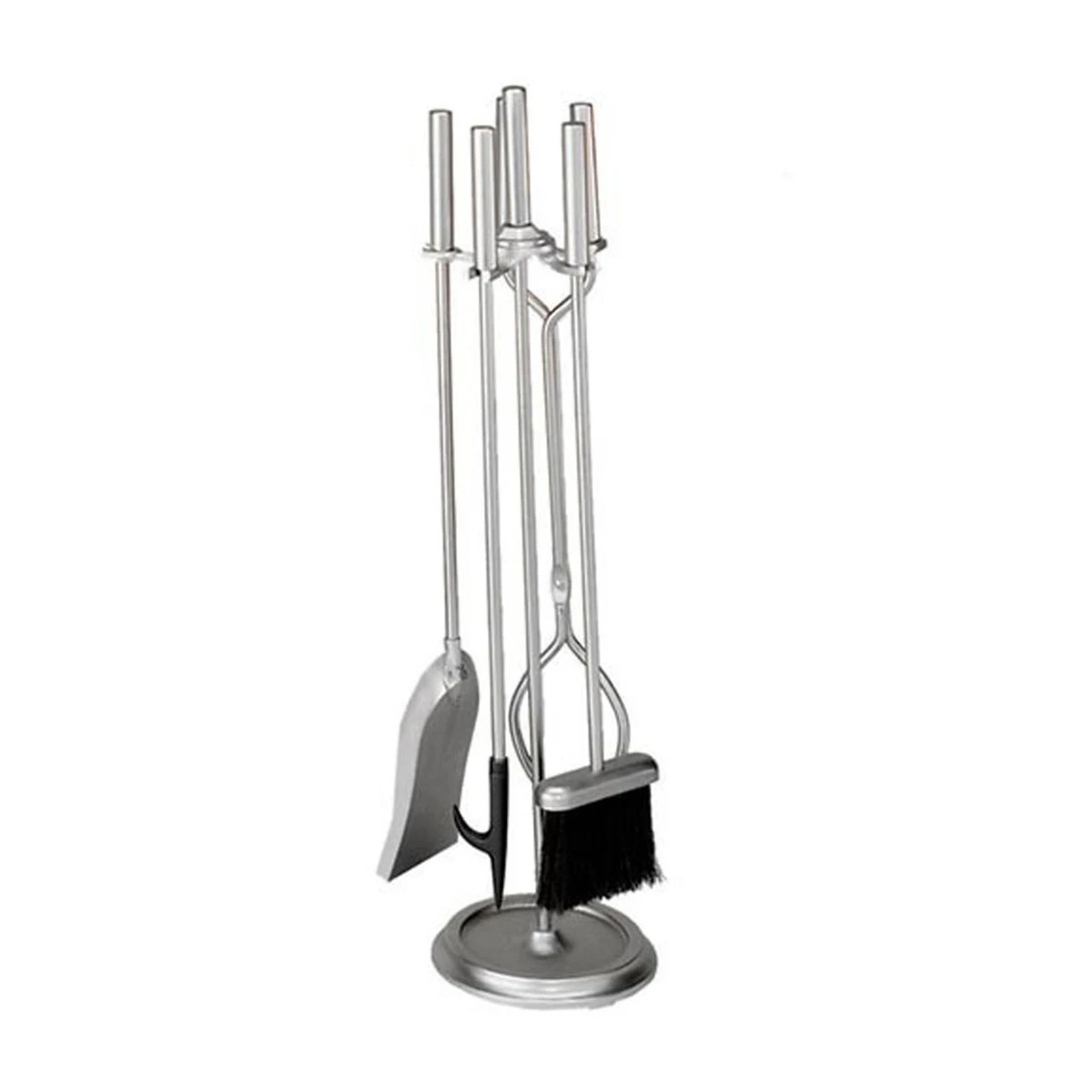 Keep your fireplace looking neat and tidy with a durable fireplace tool set from NorthlineExpress.com. This set has a simple design that looks great in any setting. Each handle is permanently bonded to each tool and solid rivets assure tools work smoothly and will not come apart. A bold brushed steel finish puts the finishing touch to this simple set, making it perfect for any hearth, from traditional to elaborate. Set includes the stand, shovel, broom, poker, and log tongs.