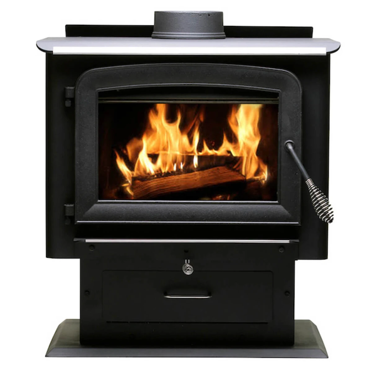 The Ashley 2,000 Sq. Ft. Pedestal Wood Stove – AW2020E-P is a medium size plate steel wood stove with outstanding heating capabilities. This unit will heat up to 2,000 sq. ft. of your home with 89,000 BTUs of heat from America’s oldest sustainable resource, wood. The spacious 2.0 cubic foot firebox will accept logs up to 21″ in length, increasing burn time and decreasing time spent refueling the stove. This stove meets the stringent requirements of the EPA Certification Guidelines. The Ashley 2,000 Sq. Ft. Pedestal Wood Stove – AW2020E-P is mobile home approved for USA only. This is a testament to the Ashley 2,000 Sq. Ft. Pedestal Wood Stove – AW2020E-P efficiency, safety, and low environmental impact. Not only does the AW2020E-P have a low carbon footprint but it also has an elegant, larger glass door that provides ease of loading logs up to 21 In. in length. The AW2020E-P model replaces the previous US Stove Company models 2000 and 2016EB wood stoves.