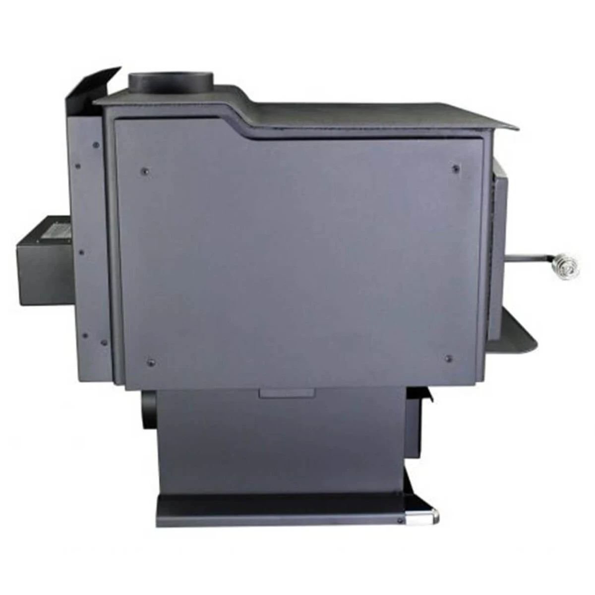 - Cast iron feed door with large ceramic glass window (14 in. x 9 in.)