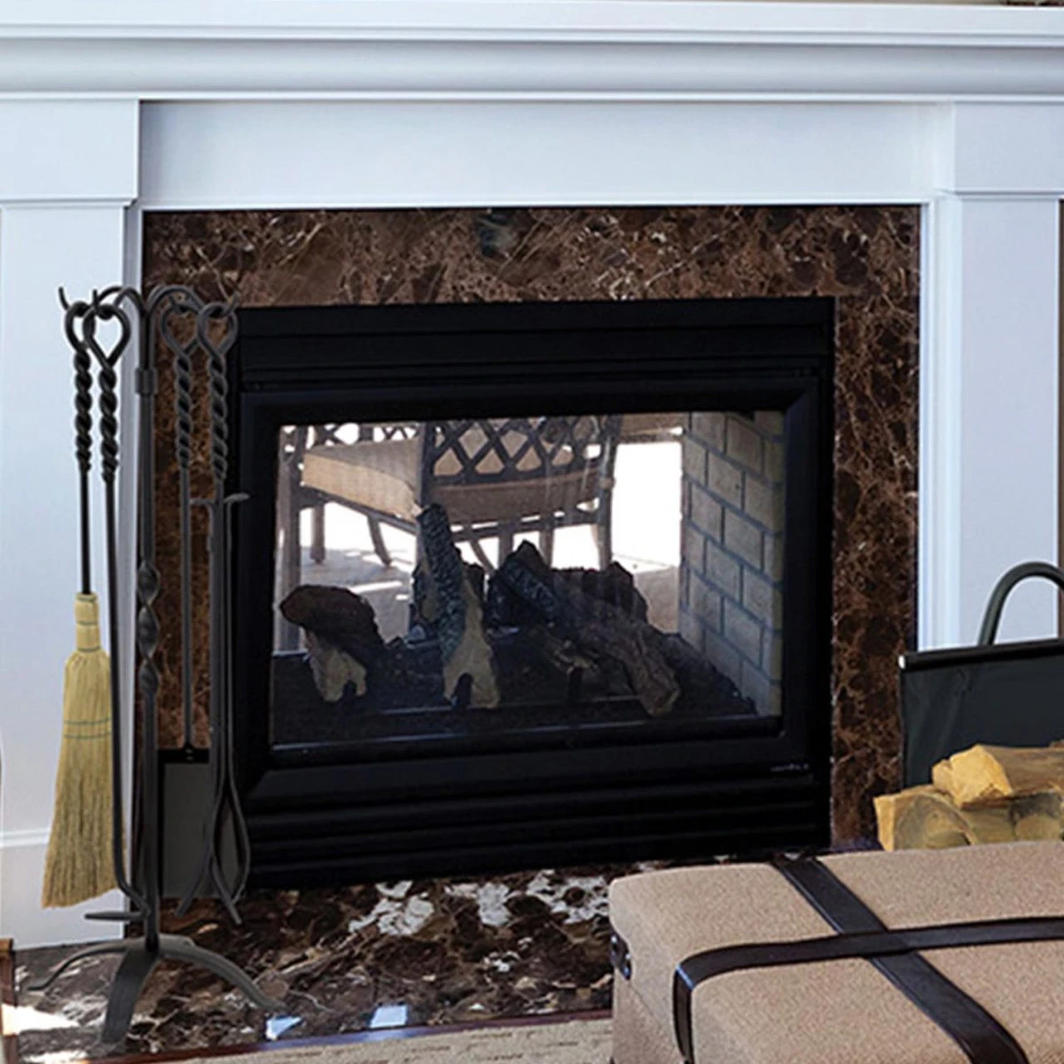 Enhance the look and feel of your fireplace with this 5 Piece Black Wrought Iron Fireset. The unique fireplace tool set is designed not to take up much space and fits nicely near any fireplace or on any hearth. The easy grip handles makes cleaning and organizing your fire stress free! Tool set includes 4 tools and a stand.