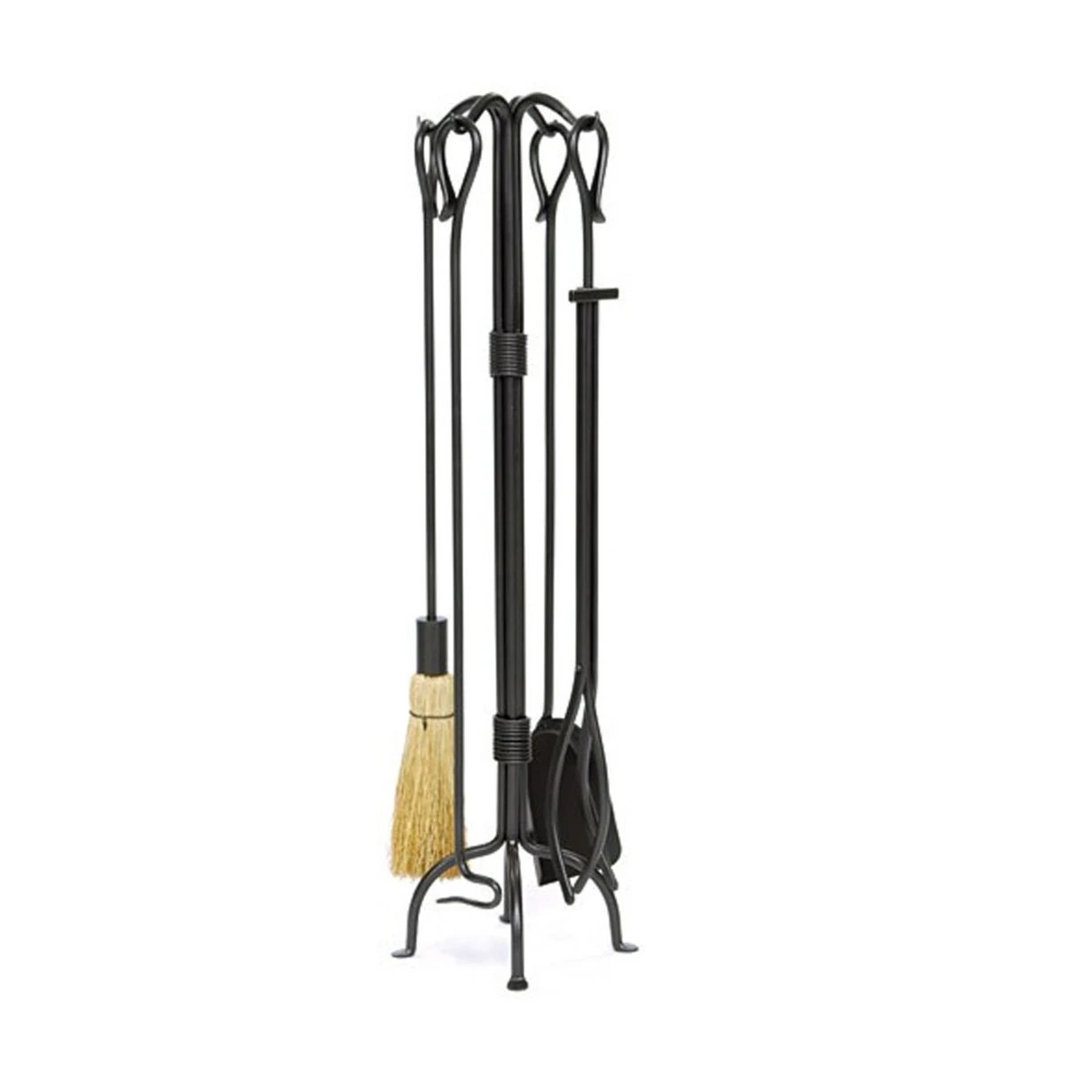 The Country Classic Tool Set will bring a stylish flair to your hearth decor with a decorative loop design and a sturdy wrought iron build for years of service and durability. Supported by 4 arched legs, the Country Classic Fireplace Tool Set fans out at the top creating convenient hanging spots for the broom, shovel, poker, and log tongs. Finished in Graphite Powdercoat the Country Classic Tool Set Measures 33″ High.