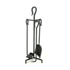 5-Piece Black Heavy-Weight Wrought Iron Fireset With Horseshoe Handles