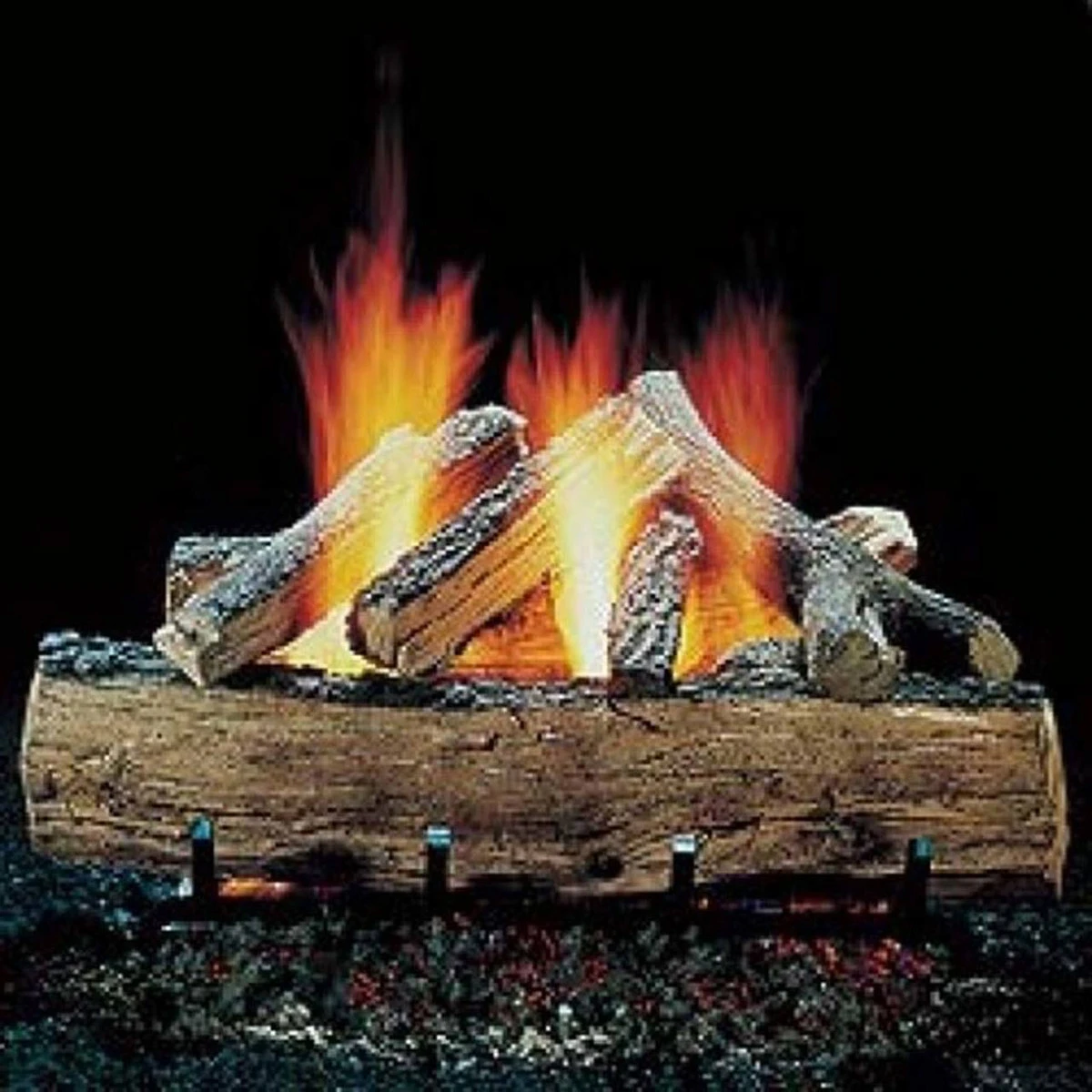 The Seasoned Split Oak vented gas log set by Hargrove is so realistic you’ll swear it is real wood. This log set is reversible, split on one side and bark on the other. The 24″ Seasoned Split Oak log set comes complete with 7 logs. All Hargrove logs carry a lifetime warranty against breakage. The accessory parts carry a two year warranty. Each gas log set comes complete with all necessary hardware; logs, pedestal grate, burner, decorative silica sand, volcanic cinders, dual effect embers, ember tray, damper stop, and aluminum connector for installation to a 1/2″ natural gas line. All gas valves are sold separately on this set, pick from the options below. For Propane fuel connections you must use a safety pilot.