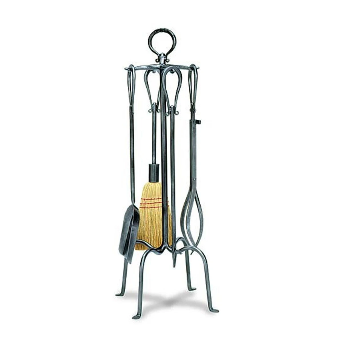 This wrought iron tool set will add a traditional and decorative touch to any hearth. It boasts heavy-duty wrought iron construction made to last a lifetime. A graphite powdercoat finish tops this fine set to ensure lasting beauty against scratching and chipping. Set includes stand, poker, shovel, tongs, and a natural fiber brush. Measures 30″ High.