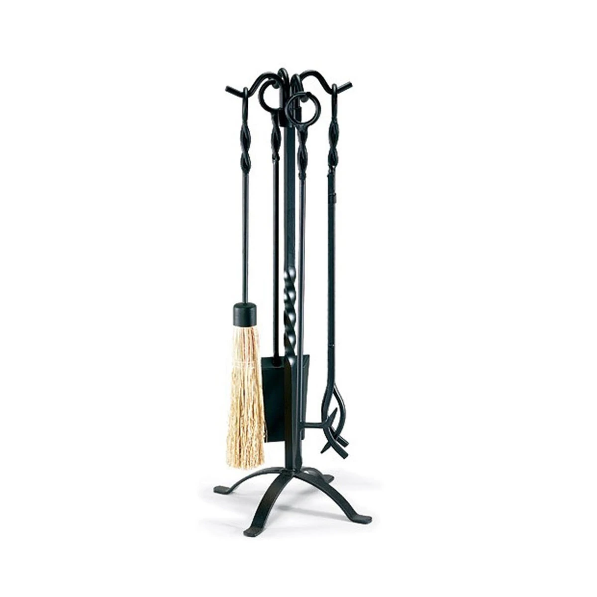 Keep your fireplace looking great while adding a decorative touch to your hearth with the Black Twirl Fireplace Tool Set. Gathered in a twirl designed stand and featuring forged loop twirls on the handle of each tool, this set has a classic black finish and includes a broom, shovel, poker and log tongs. The Black Twirl Tool Set is hand-forged of wrought iron and measures 33″ High.