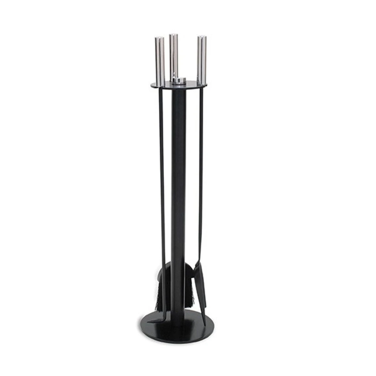 Pilgrim’s Black and Polished Nickel 4 Pc. Metro Fireplace Tool Set offers a modern Polished Nickel and Black design for your modern styled hearths. Three sturdy fireplace tools hang neatly from a stunning black stand. Sharp polished nickle handles add just the right pop to this beautiful set. Set includes the stand, a poker, brush, and shovel. Measures 31″ High.