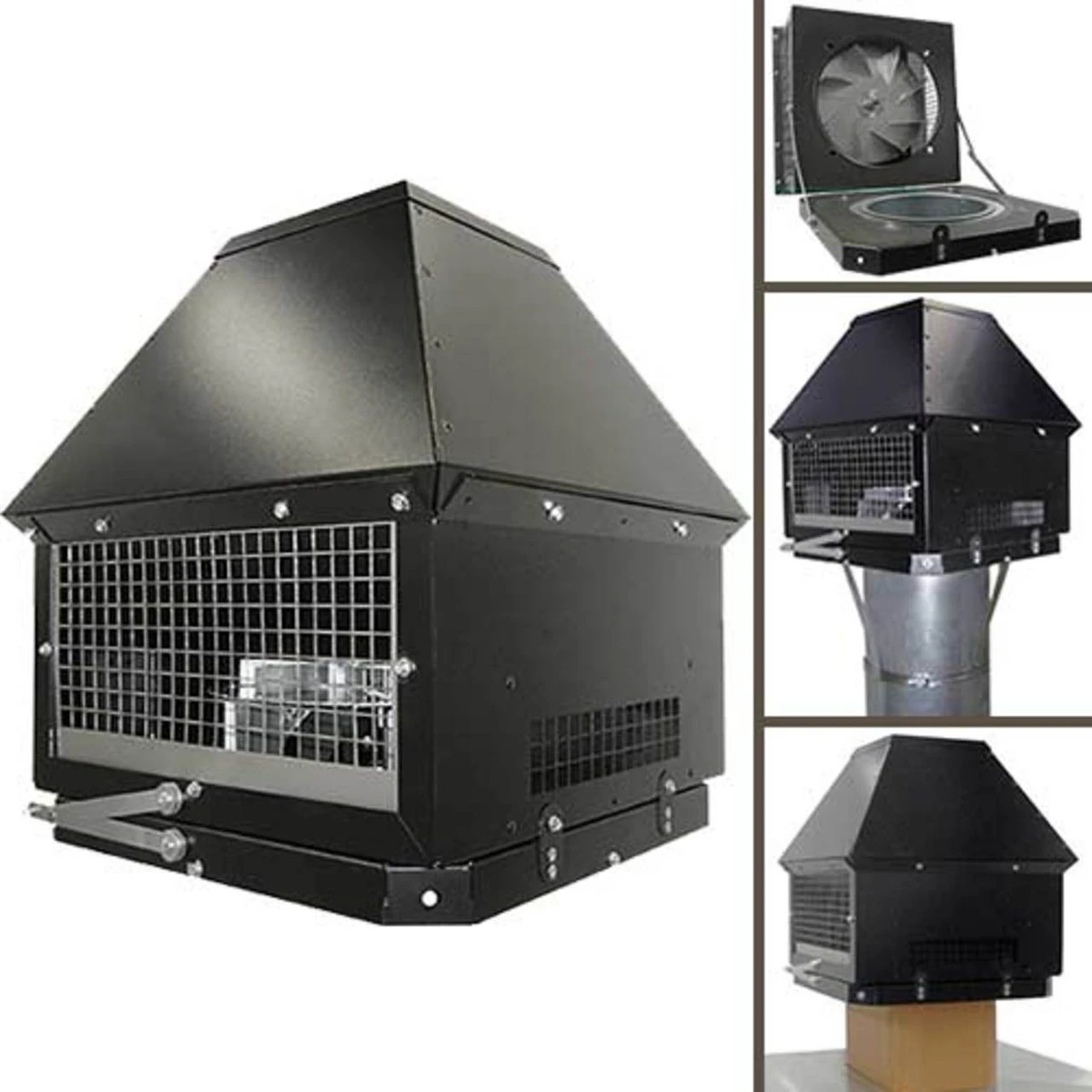 With the Auto-Draft Chimney Fan your hard starting or back-drafting fireplace, stove, BBQ, or heater draws immediately and perfectly every time. Great for chimneys that are too short or that face heavy winds. Enjoy fires without the smoky back up – even with moist or hard to ignite type fuels. Once the fire is burning, adjust the variable speed control knob to achieve maximum efficiency. Great for noise sensitive installations. Connects easily with metal or tile lined flues. Lower power consumption even at full speed. Made in the U.S.A.