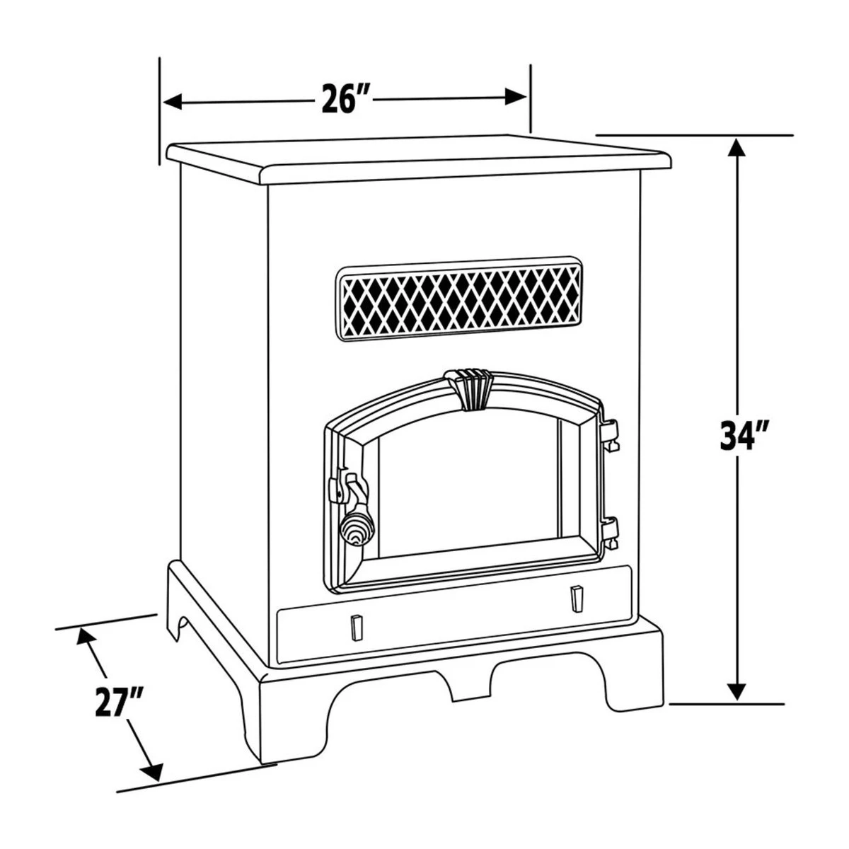 - Stove dimensions: 26″ Wide x 34″ High x 27″ Deep