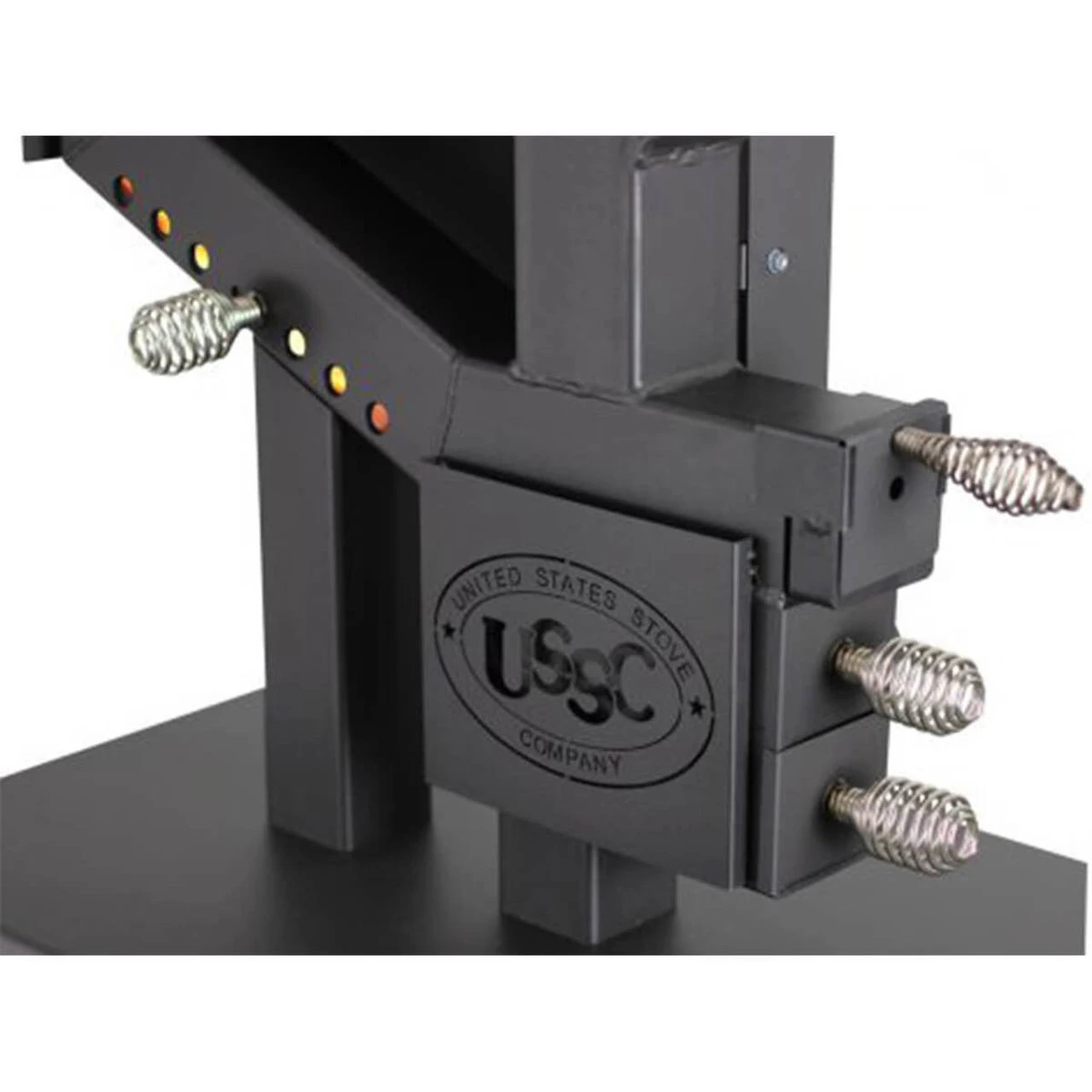 The US Stove 2,000 Sq Ft Gravity Fed Non-Electric Pellet Stove eliminates the need for electricity by utilizing a natural gravity feed system that eliminates all of the typical electrical and mechanical parts found in traditional pellet heaters. This patented revolutionary design is the only EPA certified and UL listed non-electric pellet stove on the market today. The Wiseway is simple to start and operate. Simply heat the burn chamber and flue with a propane torch and start the pellet flow. This stove uses a natural draft that will take over and ramp the stove up to temperature. Adjustments are simple by opening and closing fresh air intakes on the front of the stove. The window allows you to see the flame traveling up the body of the stove. Since it uses no electricity, heat is radiated off the 3.5 In. tubing and the steel baffles on the back. Best of all, this stove offers extremely small clearances on the rear and sides making it easy to install. Impressively, since it does not use any electricity this stove is the perfect source of heat for areas that are prone to blackouts or off the grid installations.