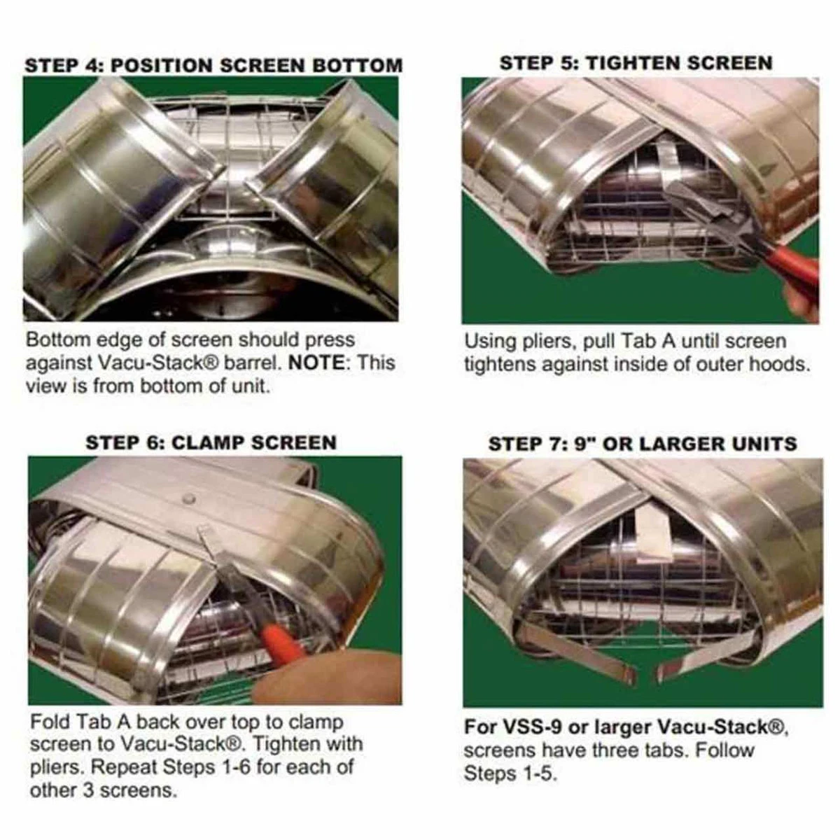 This Vacu-Stack 1/2” Spark Screen is compatible with the 17” and 18” Vacu-Stack models. By adding the optional mesh screen you will limit the chance of animals, leaves, and other debris from getting into your chimney. The screen also functions as a spark arrestor to prevent large flying embers that may escape up the flue from exiting the chimney and causing damage to your home or surrounding landscape.