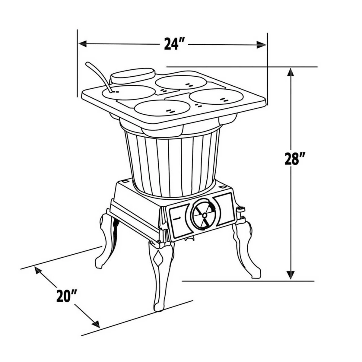 - Stove dimensions: 28″ High x 24″ Wide x 20″ Deep