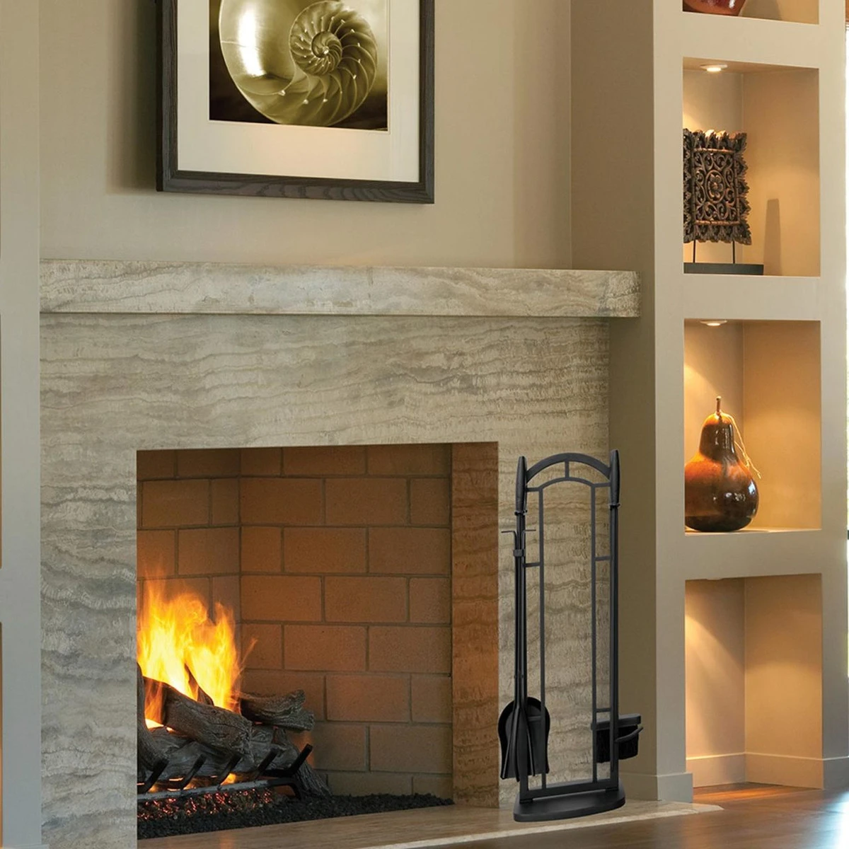 Enhance the look and feel of your fireplace with a Wrought Iron Inline Fireplace Tool Set. The unique fireplace tool set is designed not to take up much space and fits nicely near any fireplace or on any hearth. The easy grip handles makes cleaning and organizing your fire stress free! Tool set includes 4 tools and a stand.